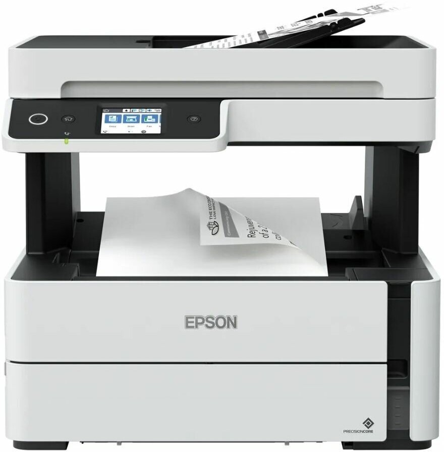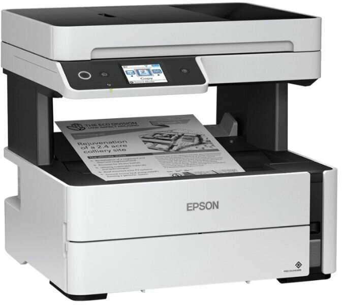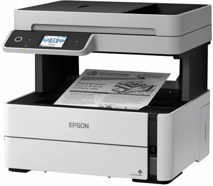 Тип устройства - МФУ; Тип печати - струйный; Цветность печати - черно-белая; Максимальный формат - A4; Количество страниц в месяц - 20000; Область применения - малый офис; Размещение - настольный; Функции печати - автоматическая двусторонняя печать, пигментные чернила, система непрерывной подачи чернил (СНПЧ); Функции сканера/копира - копирование, сканирование; Цвет - белый; Максимальная ширина от