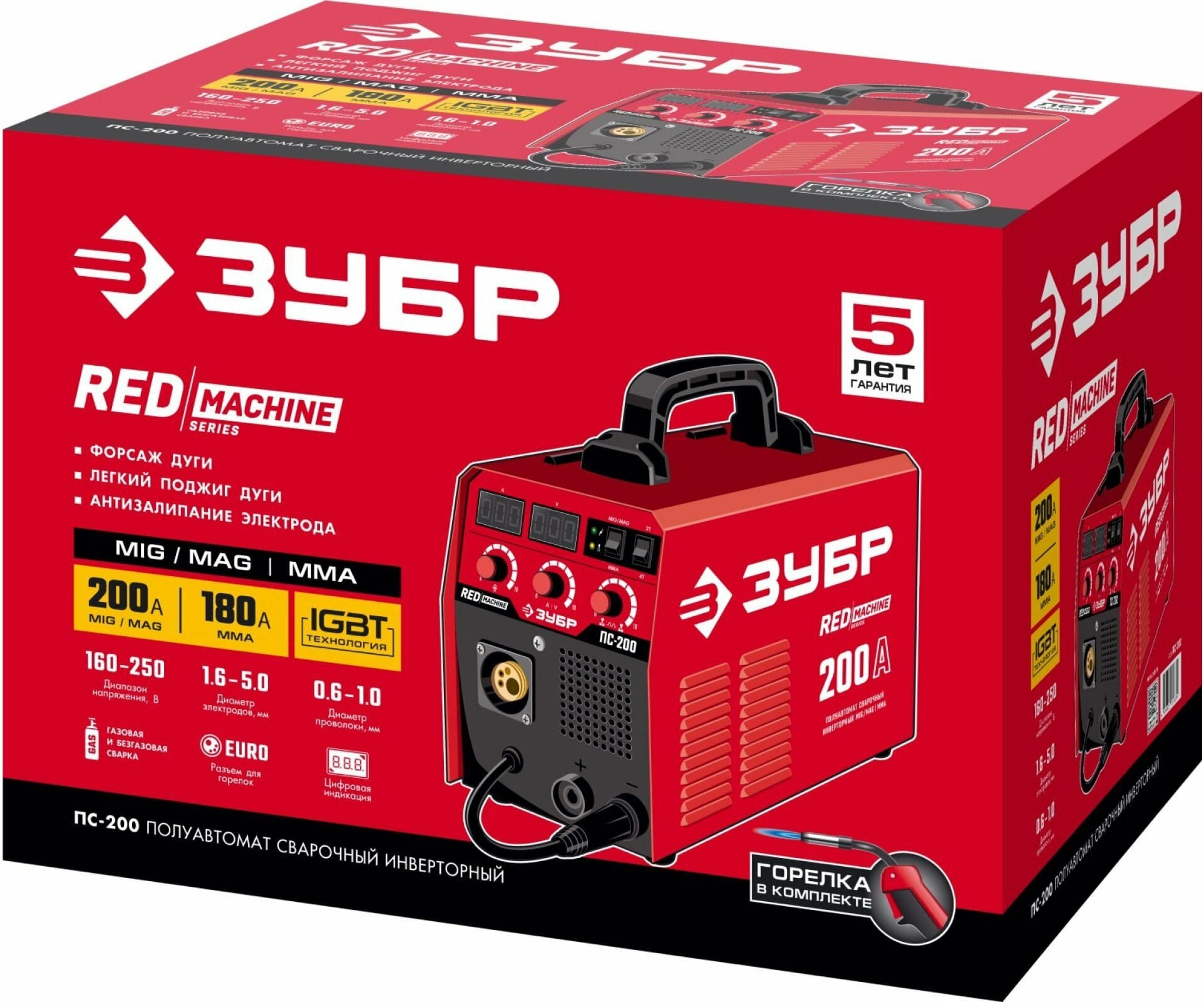 Тип аппарата - сварочный инвертор; Ручная дуговая сварка MMA - есть; Полуавтоматическая сварка (MIG/MAG) - есть; Сварочный ток (MMA) - 30-180 А; Сварочный ток (MIG/MAG) - 30-200 А; Напряжение на входе - 230 В; Количество фаз питания - 1; Напряжение холостого хода - 60 В; Тип выходного тока - постоянный; Рабочее напряжение - 23-26.40 В; Мощность - 6.40 кВ·А / 6.40 кВт; Продолжительность включения п