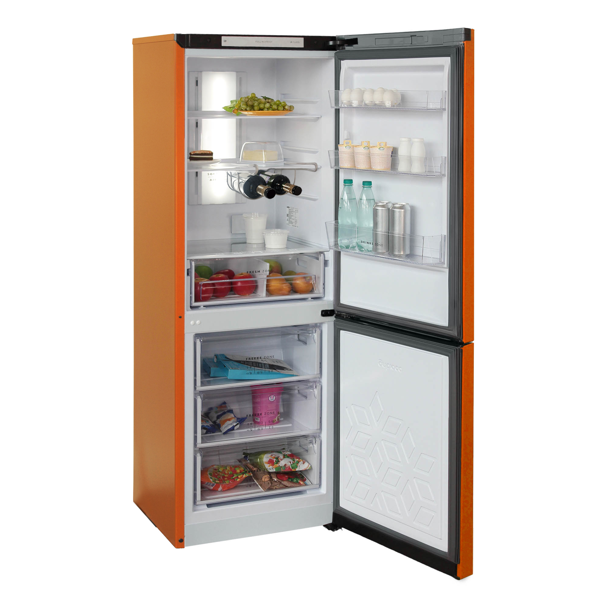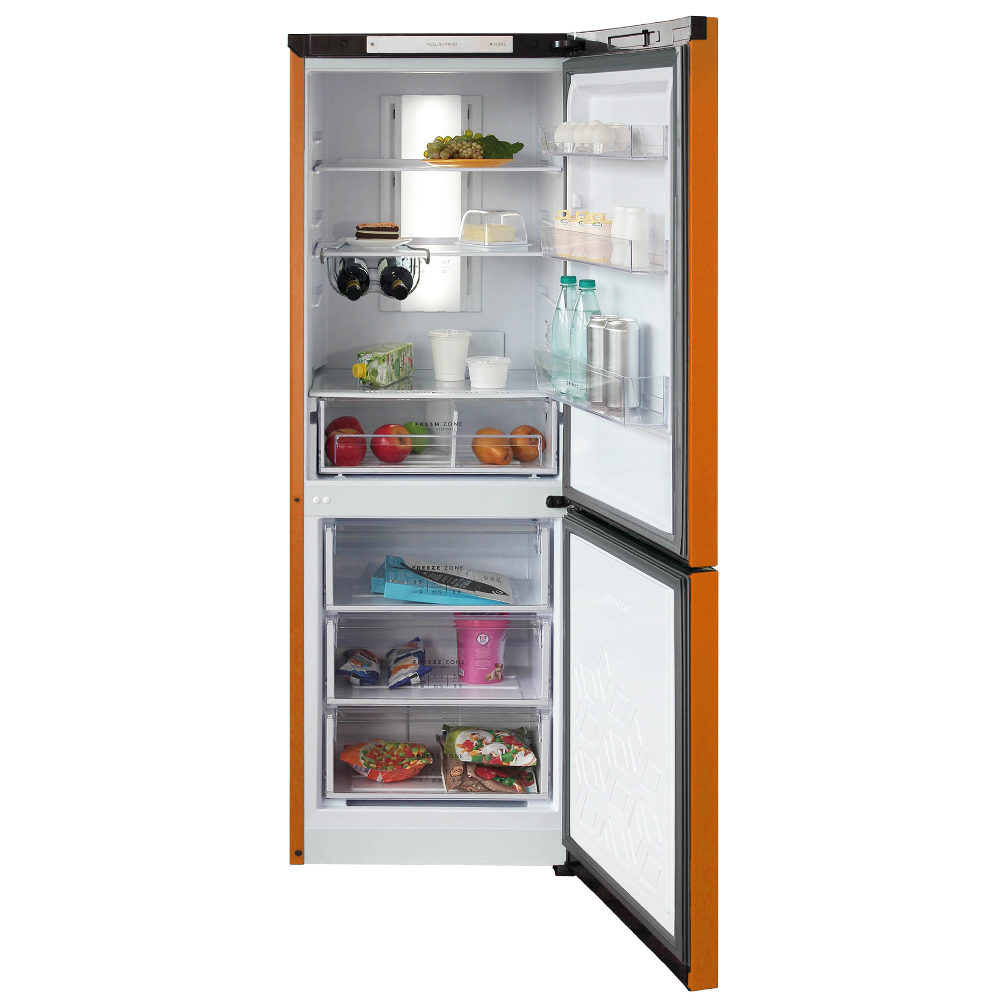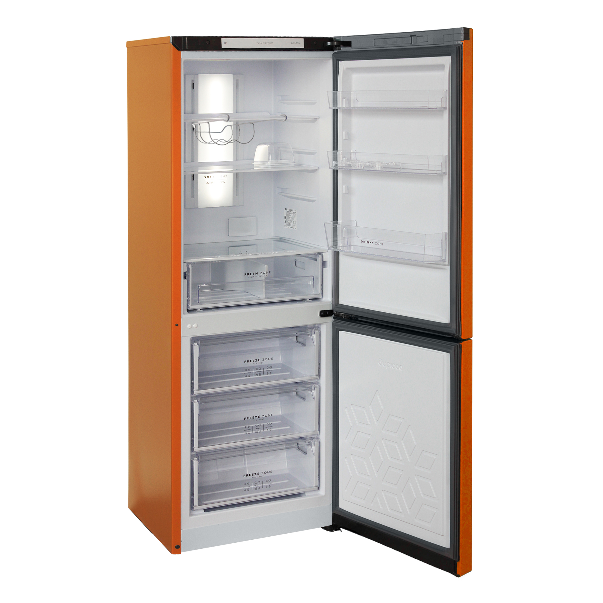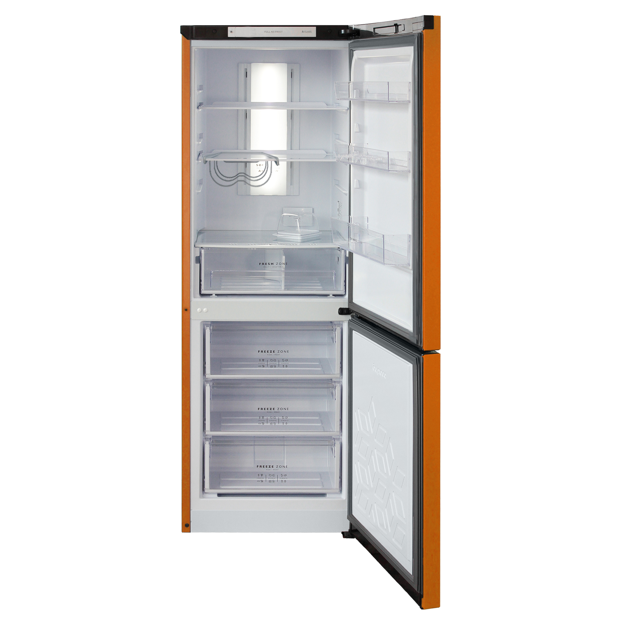 Цвет - оранжевый; Общий объем - 310 л; Объем холодильной камеры - 210 л; Объем морозильной камеры - 100 л; Класс энергоэффективности - A; Количество камер - 2; Расположение морозильной камеры - Нижнее; Управление - LED дисплей; Система Full No Frost - Да; Количество компрессоров - 1; Количество дверей - 2; Климатический класс - N, ST; Возможность перевешивания двери - да; Уровень шума - 43 дБ; Мат