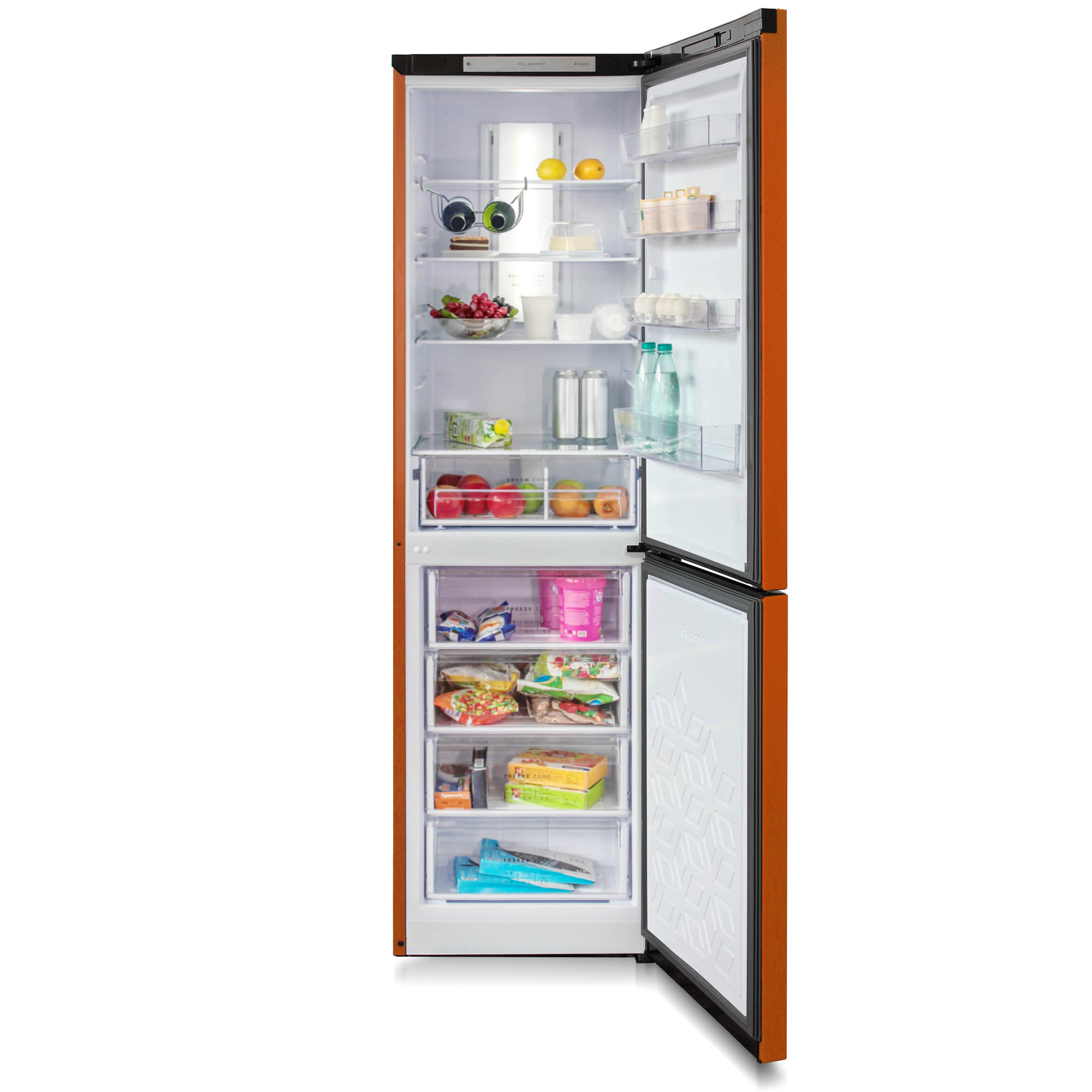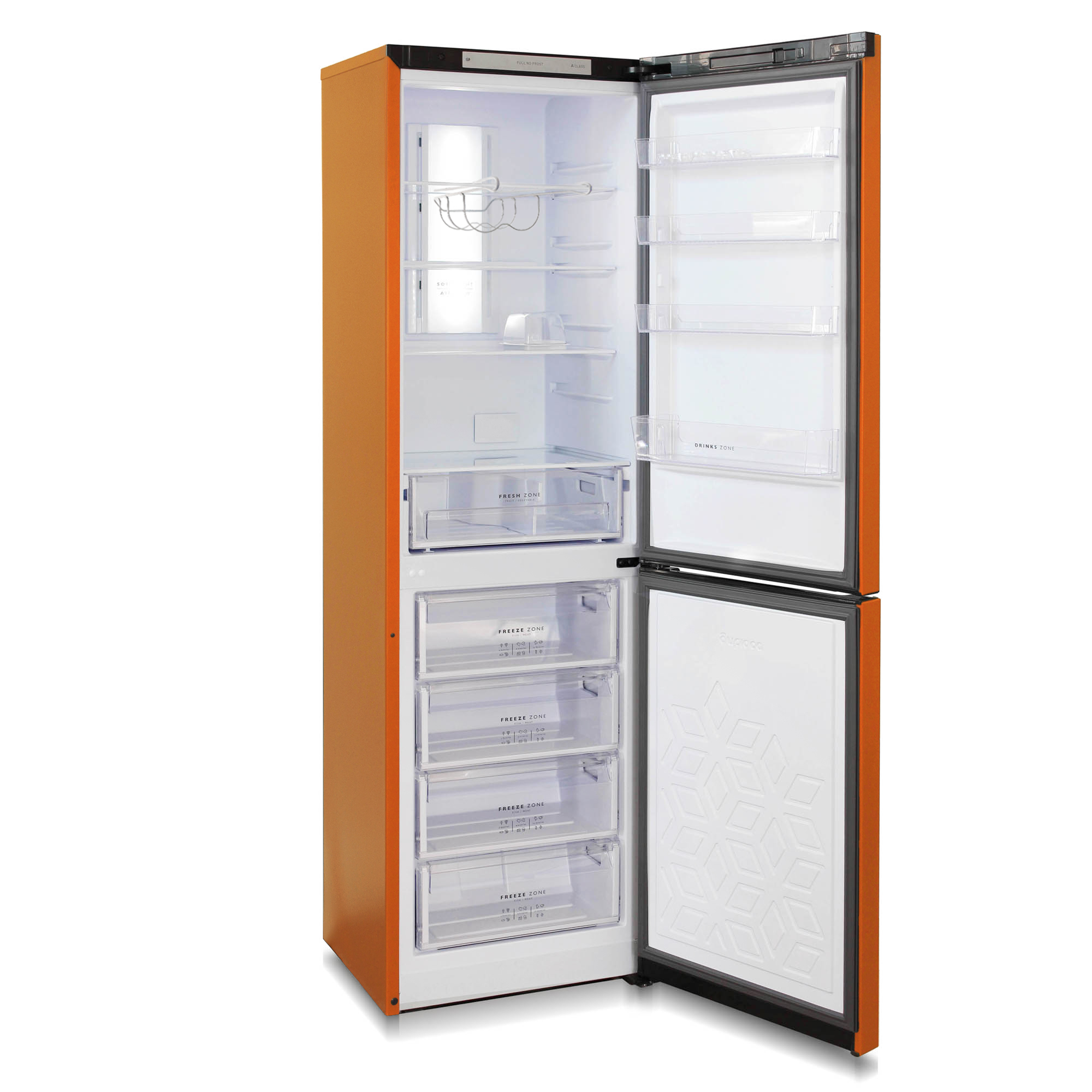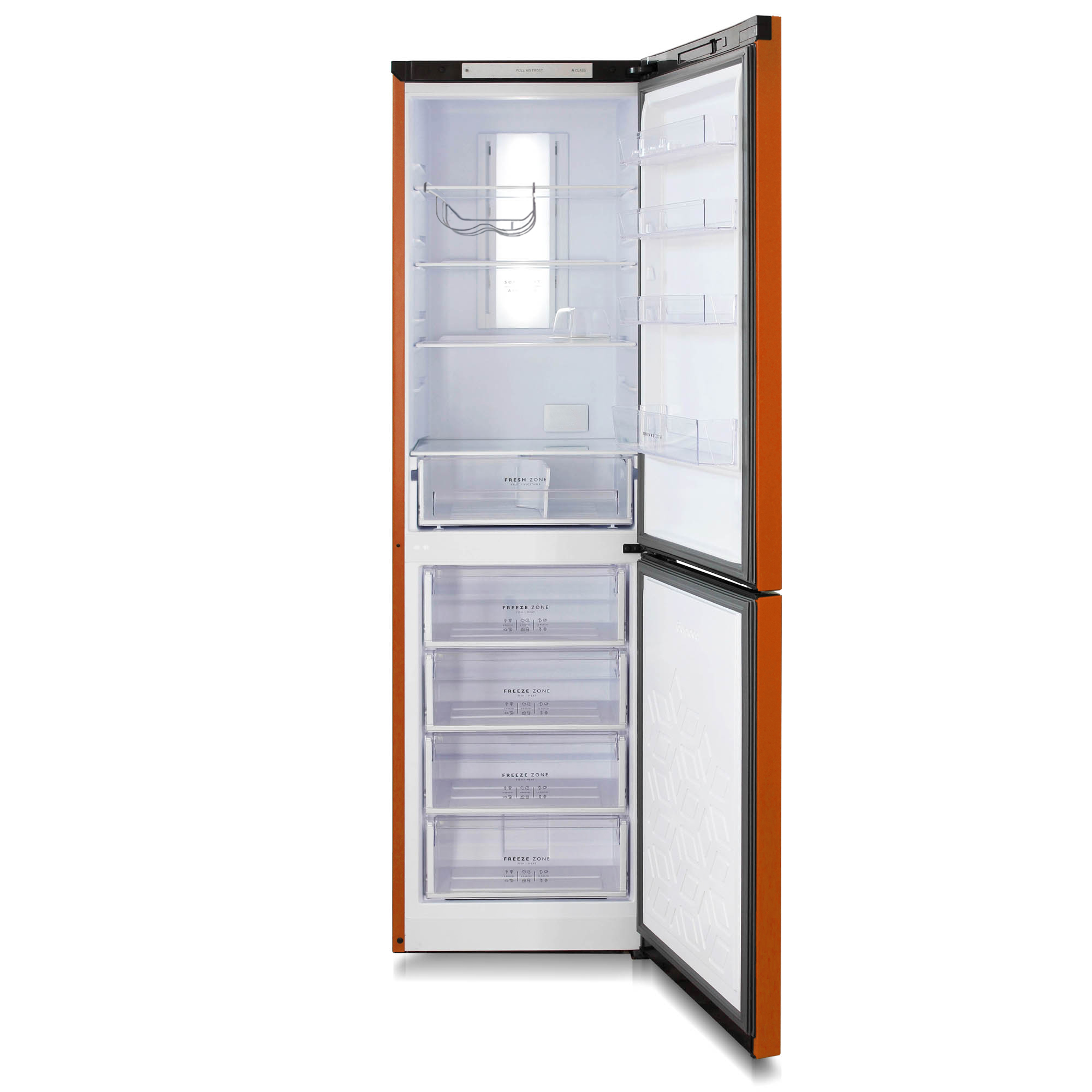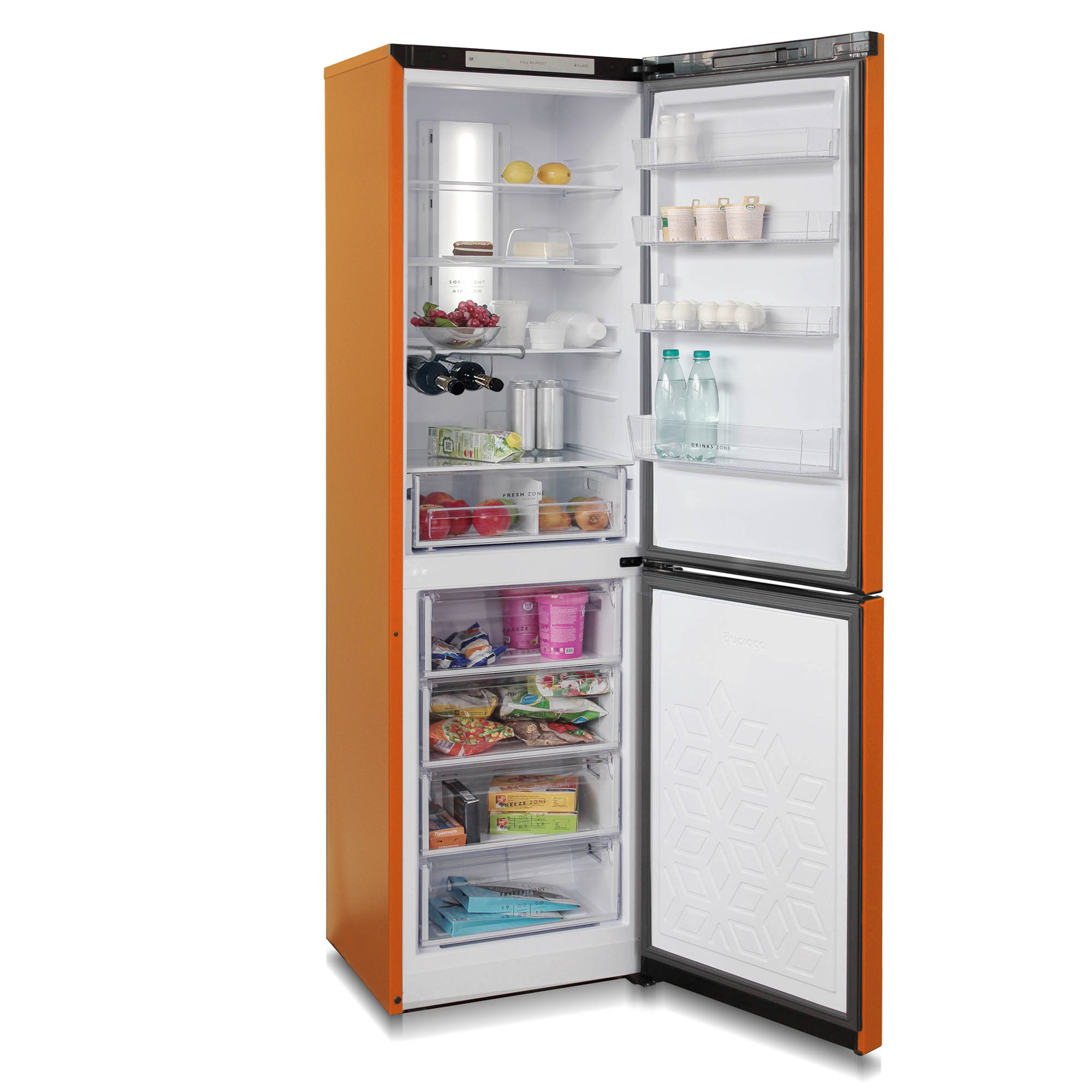 Цвет - оранжевый; Общий объем - 370 л; Объем холодильной камеры - 240 л; Объем морозильной камеры - 130 л; Класс энергоэффективности - A; Количество камер - 2; Количество дверей - 2; Расположение морозильной камеры - Нижнее; Управление - LED дисплей; Количество компрессоров - 1; Климатический класс - N, ST; Возможность перевешивания двери - есть; Уровень шума - 43 дБ; Высота - 207 см; Ширина - 60