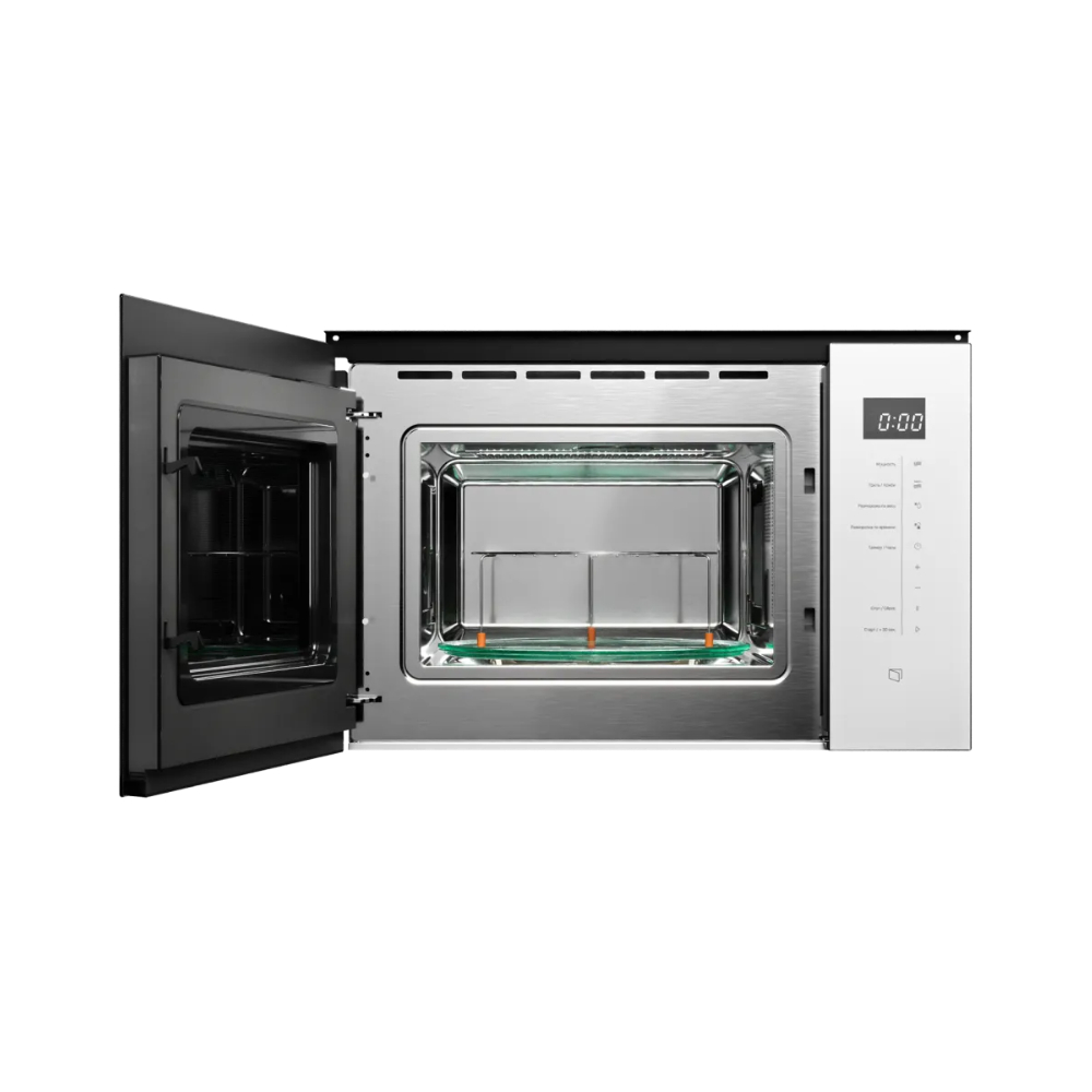Объем, л - 25; Диаметр поворотного стола, см - 31.5; Макс. мощность СВЧ, Вт - 1000; Управление - Сенсорное; Режимы работы микроволновой печи - С грилем; Технология СВЧ - С поворотным столом; Внутреннее покрытие микроволновой печи - Нержавеющая сталь; Открывание дверцы микроволновой печи - Кнопка; Направление открывания дверцы - Боковое налево; Тип - Встраиваемая микроволновая печь; Цвет - Белый; М