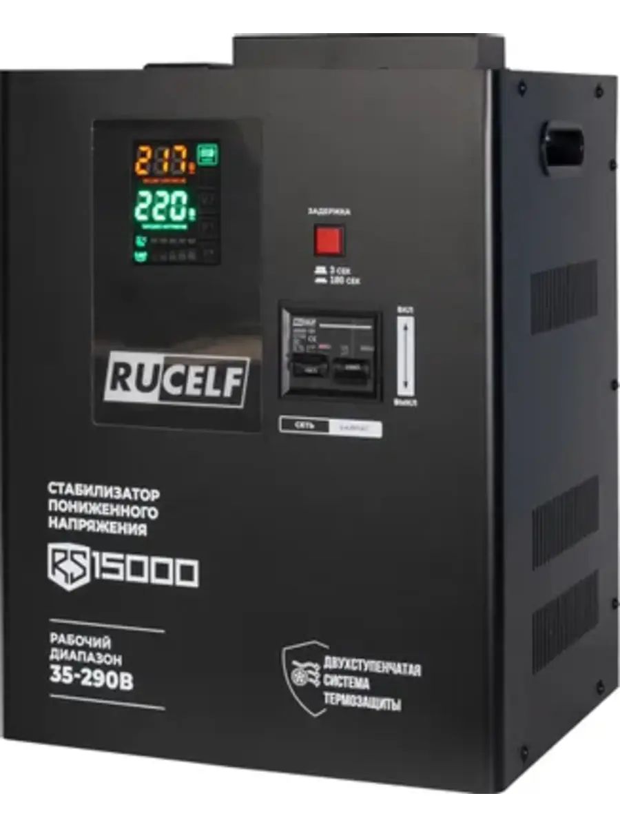 Тип - Стабилизатор напряжения; Вид стабилизатора - Электронно-релейный; Единиц в одном товаре - 1; Мин. входное напряжение, В - 35; Макс. входное напряжение, В - 290; Погрешность стабилизации, % - 10; Полная мощность, В·А - 15000; Выходной ток, А - 60; Мощность, Вт - 13200; Рабочая сеть стабилизатора - Однофазная; Выходное напряжение - 220В; Индикация - Цифровая; Размещение - Универсальное; Количе