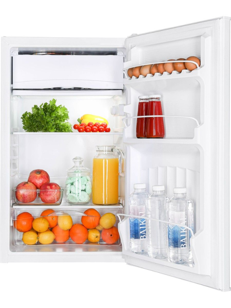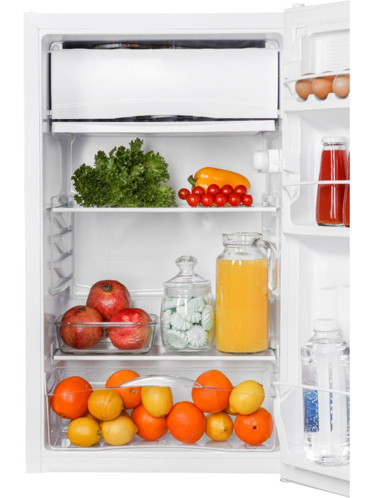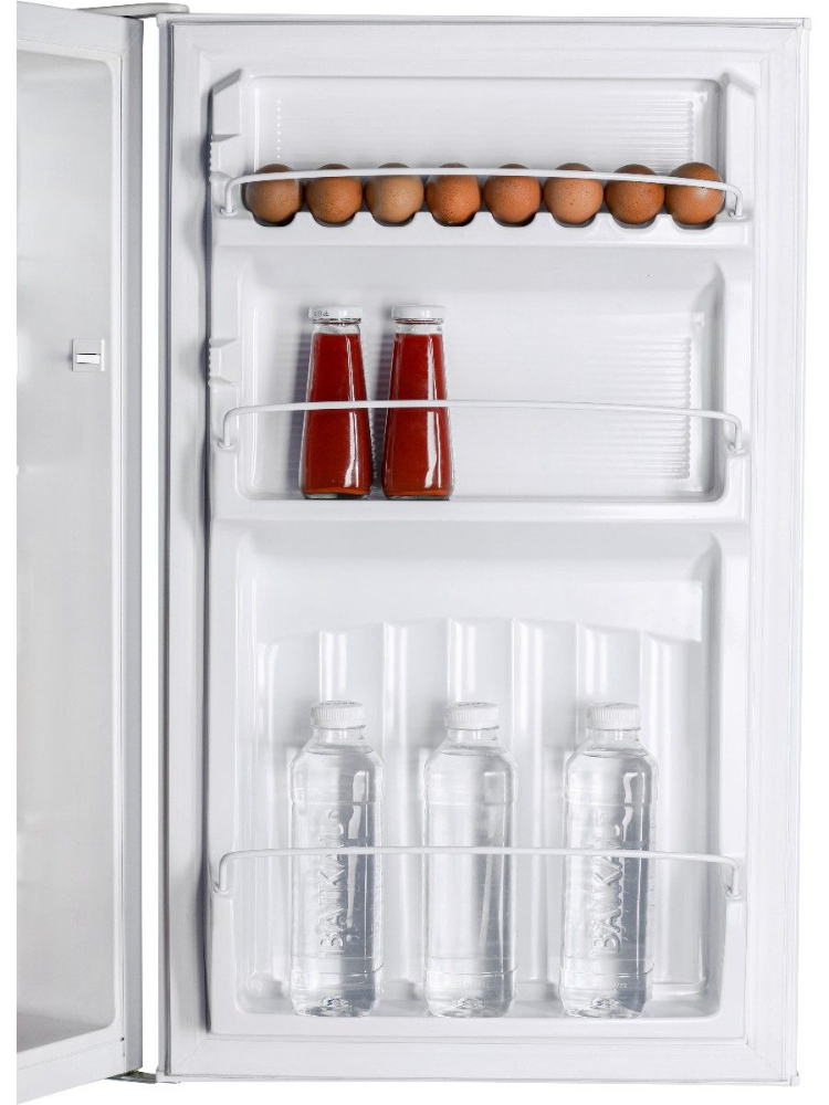 Количество камер - 1; Открывание дверей - Вправо,Перевешиваемые двери; Расположение морозильной камеры - Сверху; Количество дверей - 1; Количество полок - 2; Количество полок на двери - 3; Материал полок - Закаленное стекло; Тип - Холодильник; Гарантийный срок - 2 года; Срок службы, лет - 10; Общий объем, л - 111; Общий объем холодильной камеры, л - 100; Класс энергопотребления - A+; Общий объем м