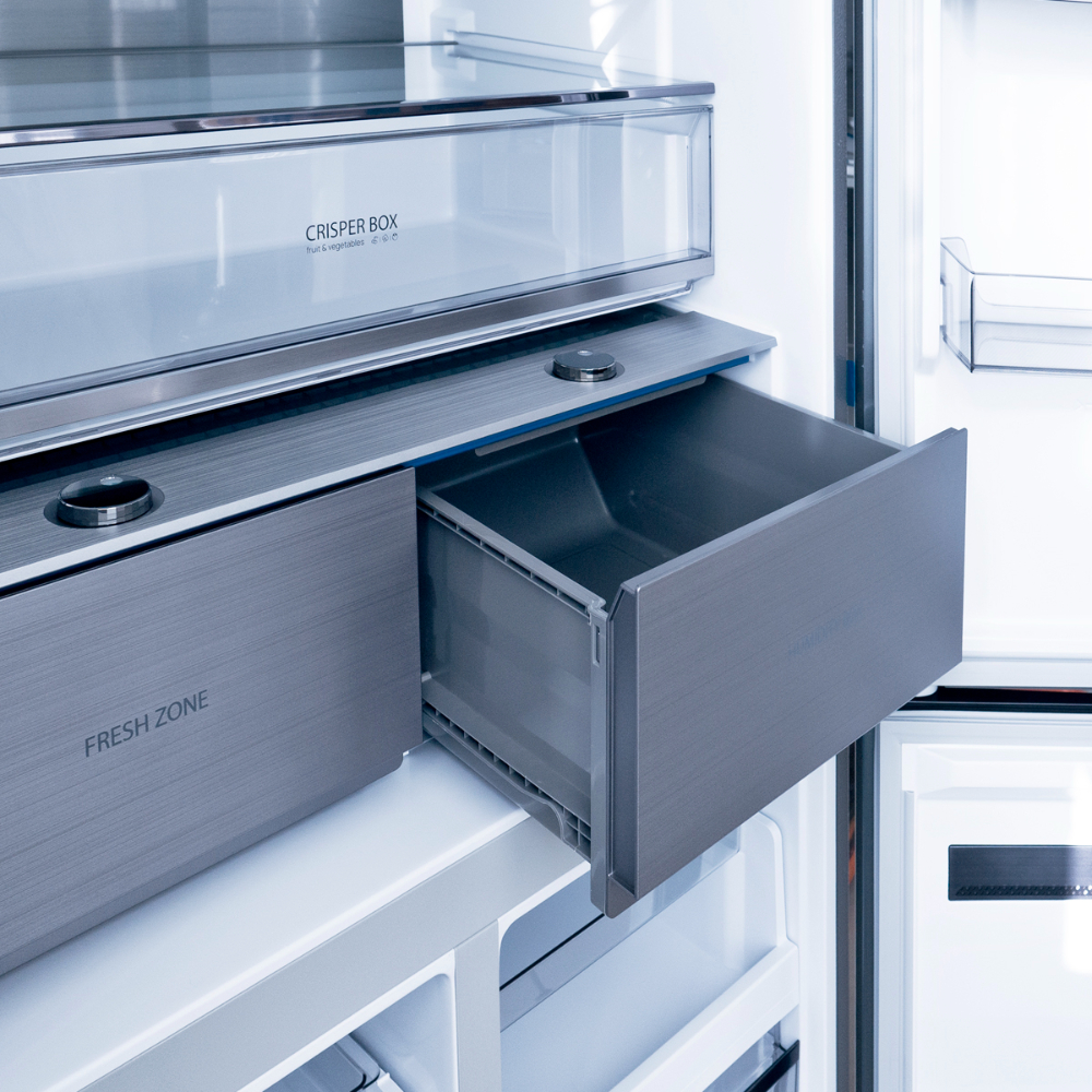 Общий объем, л - 600; Размеры, мм (ШхГхВ) - 833x668х1920; Размораживание - No frost; Общий объем холодильной камеры, л - 388; Класс энергопотребления - A+; Общий объем морозильной камеры, л - 212; Мощность замораживания (кг/сут) - 5; Макс. уровень шума, дБ - 37; Количество камер - 3; Климатический класс - SN-T +10°C / +43°C; Вид компрессора - Инверторный; Открывание дверей - В стороны; Зона свежес