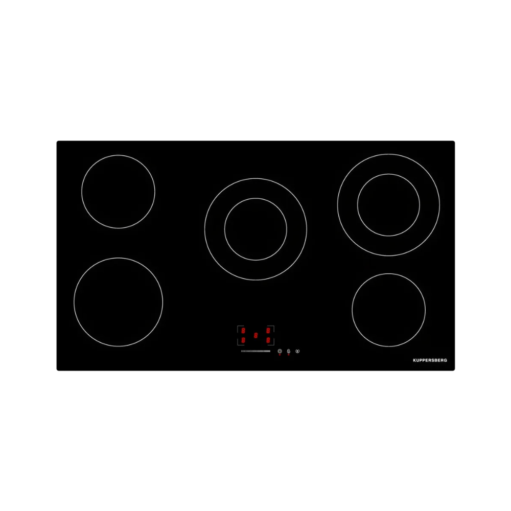 Тип панели (плиты) - Электрическая; Количество конфорок - 5; Материал рабочей поверхности панели - Стеклокерамика; Конструкция панели - Независимая; Индикация - Остаточное тепло; Тип - Варочная панель; Цвет - Черный; Мощность варочной панели, Вт - 9300; Ширина, см - 90; Глубина, см - 52; Размеры ниши для встраивания панели, мм - 875х495; Ширина встраивания, см - 87.5; Глубина встраивания, см - 49.
