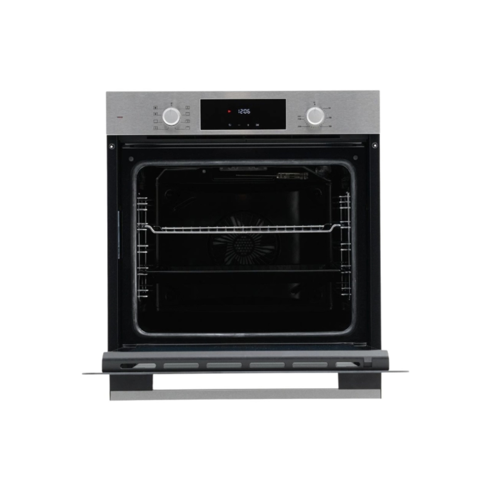 Объем духовки, л - 73; Тип установки - Независимая; Тип питания - Электрический; Количество режимов работы - 8; Управление духовкой - Дисплей,Таймер,Утапливаемые переключатели; Внутреннее покрытие - Эмаль; Особенности духовки, плиты - Встроенные часы,Дисплей; Количество стекол дверцы духовки - 2; Системы защиты - Автоотключение; Тип - Духовой шкаф; Цвет - Черный,серебристый; Потребляемая мощность,