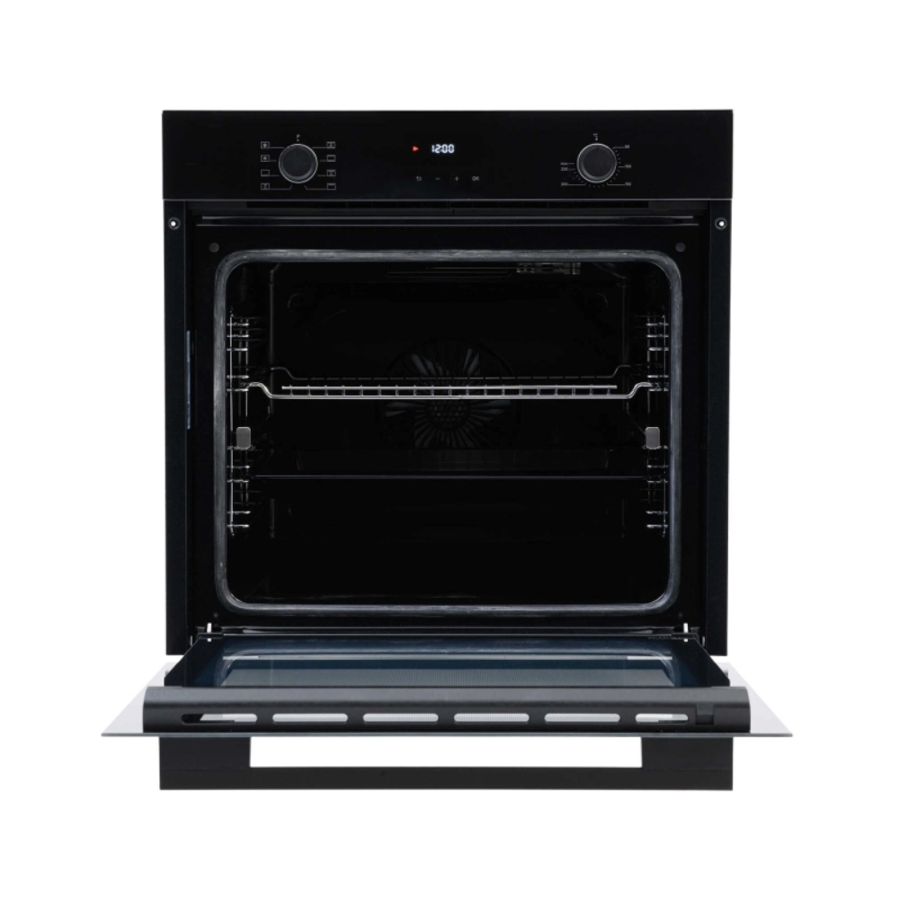Объем духовки, л - 73; Тип установки - Независимая; Тип питания - Электрический; Количество режимов работы - 8; Управление духовкой - Дисплей,Таймер,Утапливаемые переключатели; Внутреннее покрытие - Эмаль; Особенности духовки, плиты - Дисплей,Встроенные часы; Количество стекол дверцы духовки - 2; Системы защиты - Автоотключение; Тип - Духовой шкаф; Цвет - Черный; Потребляемая мощность, Вт - 3500;
