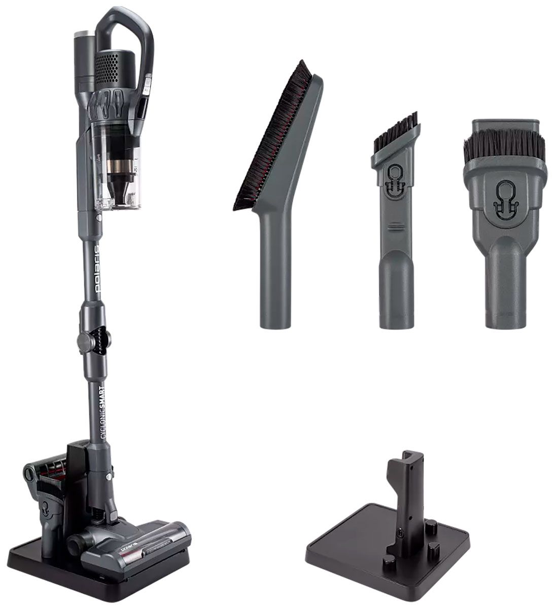 Мощность всасывания, Вт - 200; Вид пылесборника - Контейнер; Тип уборки - Сухая и влажная; Время работы от аккумулятора, мин - 80; Объем пылесборника, л - 0.3; Вид фильтра - HEPA; Количество насадок - 5; Количество режимов работы - 4; Тип - Вертикальный пылесос; Цвет - Темно-серый; Потребляемая мощность, Вт - 600; Вид пылесоса - Беспроводной; Тип трубки - Цельная; Вид питания - Встроенный аккумуля