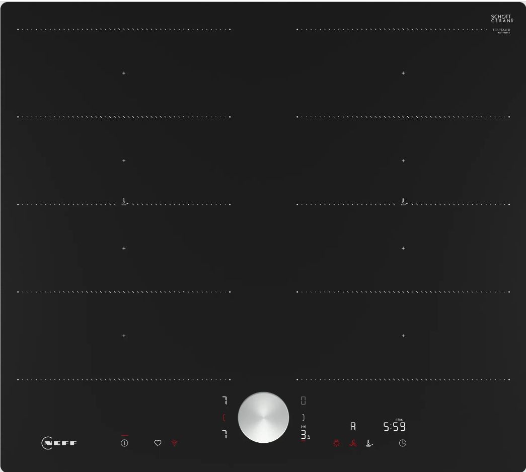 Тип панели (плиты) - Индукционная; Количество конфорок - 4; Материал рабочей поверхности панели - Стеклокерамика; Конструкция панели - Независимая; Индикация - Режим работы,Остаточное тепло; Тип управления - Сенсорное; Тип - Варочная панель; Цвет - Черный; Мощность варочной панели, Вт - 7400; Ширина, см - 57.2; Глубина, см - 51.2; Размеры ниши для встраивания панели, мм - 560х500; Ширина встраиван
