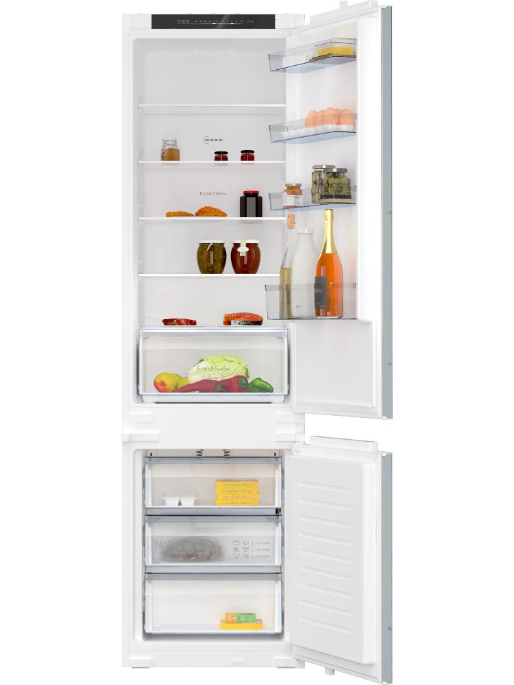 Общий объем, л - 290; Размеры, мм (ШхГхВ) - 541х548х1935; Размораживание - No frost; Общий объем холодильной камеры, л - 215; Класс энергопотребления - E; Автономное сохранение холода, ч - 10; Общий объем морозильной камеры, л - 75; Мощность замораживания (кг/сут) - 7.5; Макс. уровень шума, дБ - 34; Количество камер - 2; Климатический класс - SN-ST +10°C / +38°C; Открывание дверей - Перевешиваемые