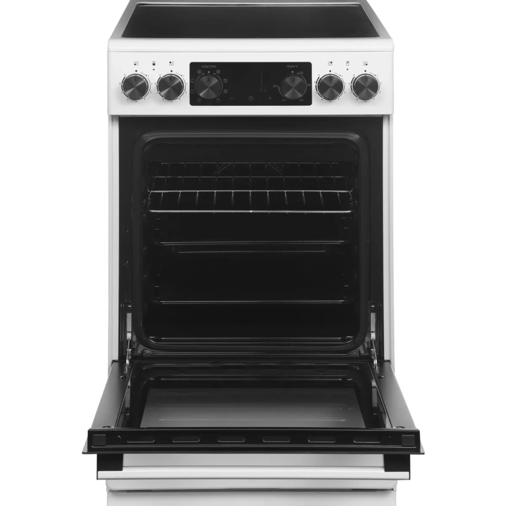 Тип конфорок - Электрические; Тип духовки - Электрический; Ширина плиты, см - 49.3; Глубина плиты, см - 65; Объем духовки, л - 59; Высота, см - 85; Тип управления - Электронно-механическое; Системы защиты - Блокировка от детей; Материал рабочей поверхности - Керамика; Тип - Плита; Цвет - Белый; Потребляемая мощность, Вт - 8300; Тип панели (плиты) - Электрическая; Тип гриля - Электрический; Внутрен