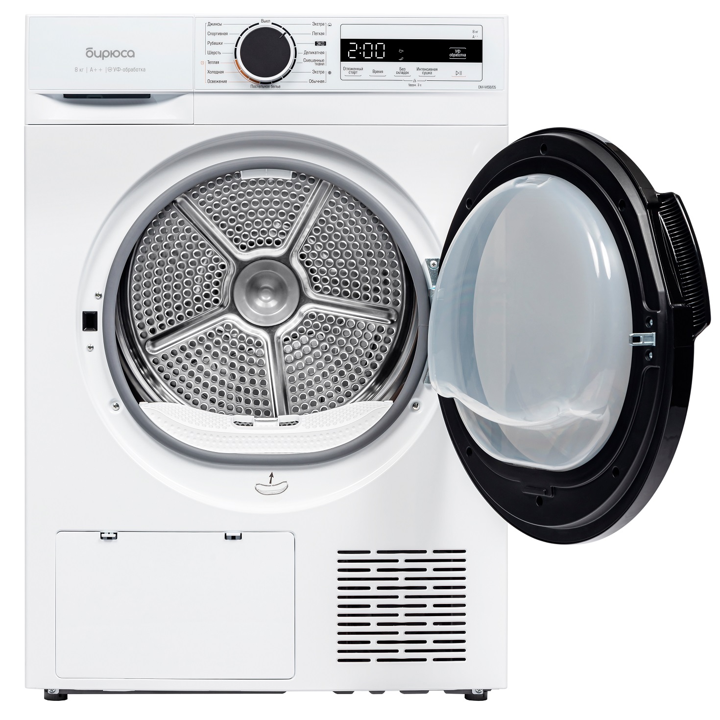 Тип загрузки - Фронтальная; Загрузка белья для сушки, кг - 8; Количество программ сушки - 15; Размеры, мм (ШхГхВ) - 595х600х845; Тип сушки - С тепловым насосом; Класс энергопотребления - A++; Управление - Электронное; Отложенный старт, ч - 24; Системы защиты - Блокировка от детей; Тип - Сушильная машина; Цвет - Белый,черно-серый; Уровень шума при отжиме, дБ - 65; Прямой привод - Нет; Инверторный д