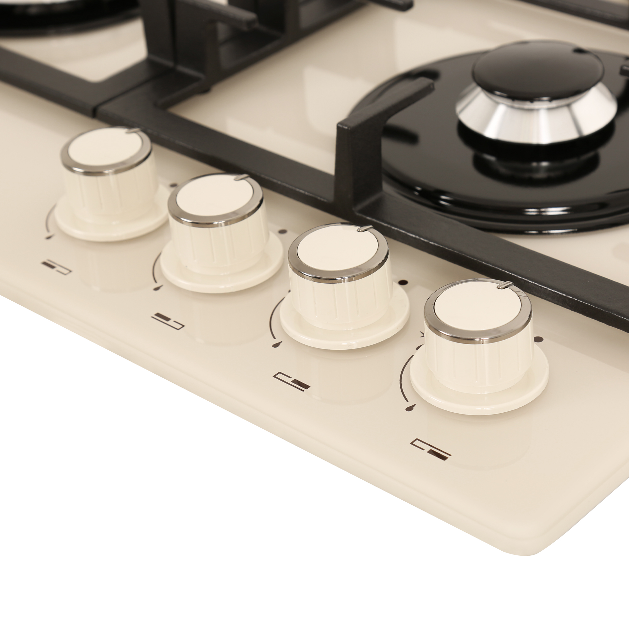 Тип панели (плиты) - Газовая; Количество конфорок - 4; Материал рабочей поверхности панели - Закаленное стекло; Конструкция панели - Независимая; Тип управления - Механическое; Тип - Варочная панель; Цвет - Бежевый; Ширина, см - 60; Глубина, см - 52.5; Размеры ниши для встраивания панели, мм - 486х554; Ширина встраивания, см - 55.4; Глубина встраивания, см - 48.6; Минимальная толщина столешницы, м