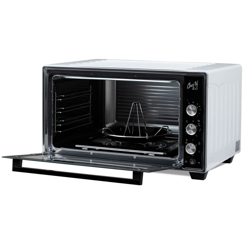 Объем духовки, л - 50; Тип установки - Независимая; Тип питания - Электрический; Количество режимов работы - 5; Управление духовкой - Таймер; Внутреннее покрытие - Эмаль; Особенности духовки, плиты - Хромированные направляющие; Количество стекол дверцы духовки - 1; Системы защиты - Автоотключение; Тип - Духовой шкаф; Цвет - Белый,прозрачный; Потребляемая мощность, Вт - 1400; Класс энергоэффективно