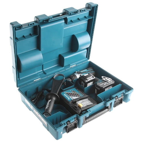 два аккумулятора, зарядное устройство, дополнительная рукоятка, ограничитель глубины сверления, бита, кейс