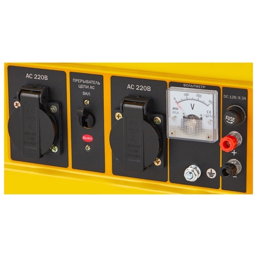 Достоинства: Аккуратно собран, довольно компактный, легко заводится, очень дешевый. Большой бак (10 литров) с сеткой и фильтром. Есть вольтметр, защита с кнопкой, выходы 12 и 220 В. Защита от запуска без масла.