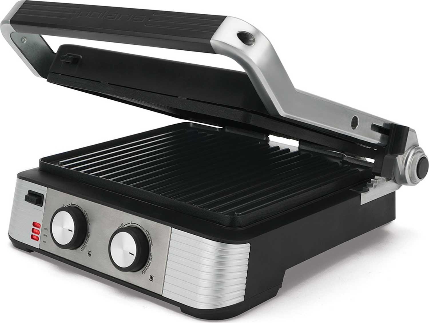 Мощность, Вт - 2200; Материал рабочей поверхности - Алюминий; Управление - Механическое; Антипригарное покрытие - Да; Нагревательный элемент - Закрытый; Ширина рабочей поверхности, см - 28.5; Индикация и сигналы - Индикация включения; Конструктивные особенности тепловых приборов - Поддон для сбора жира; Материал корпуса - Металл,Пластик; Съемные панели - Да; Вид гриля - Гриль; Расположение нагрева